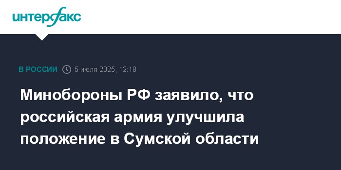 Минобороны РФ заявило, что российская армия улучшила положение в Сумской области