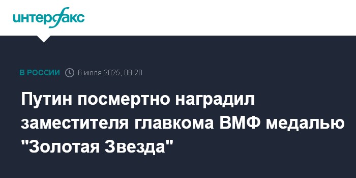 Путин посмертно наградил заместителя главкома ВМФ медалью "Золотая Звезда"