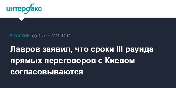Москва. 7 июля. INTERFAX.RU - Сроки проведения очередного, третьего раунда прямых российско-украинских переговоров согласовываются, заявил глава МИД РФ Сергей Лавров.
