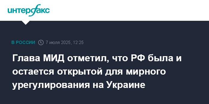 Москва. 7 июля. INTERFAX.RU - Россия открыта для мирного урегулирования украинского кризиса, но речь должна идти о достижении прочного мира, а не о перемирии, заявил глава МИД РФ Сергей Лавров.