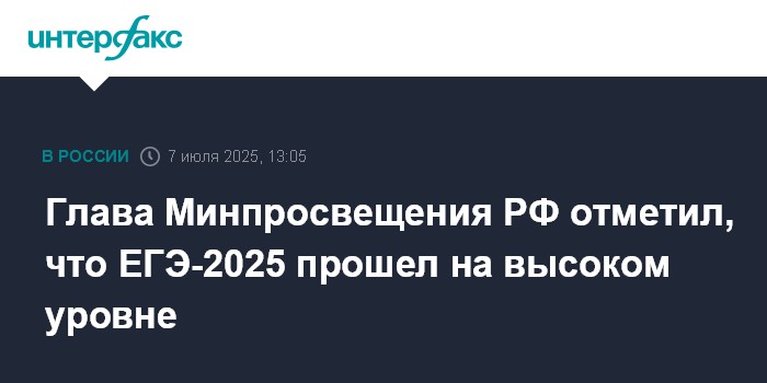 "Они (экзамены - ИФ) прошли на высоком уровне без каких-то происшествий, в штатном режиме", - сказал министр в понедельник на пресс-конференции по итогам основного периода ЕГЭ-2025.