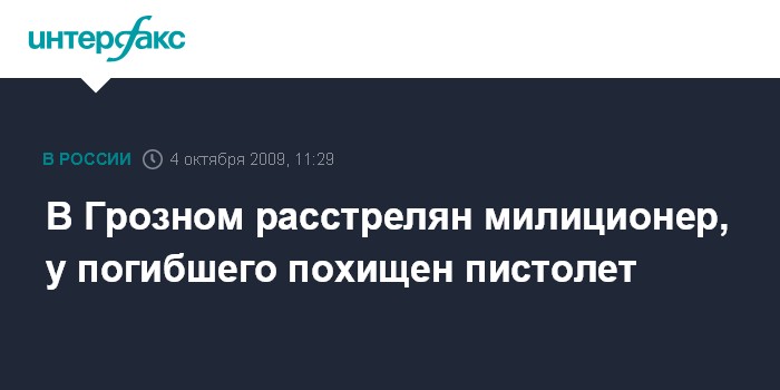 В Грозном расстрелян милиционер, у погибшего похищен пистолет