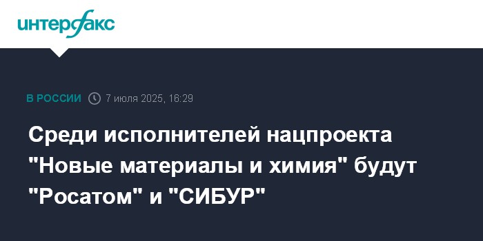 Среди исполнителей нацпроекта "Новые материалы и химия" будут "Росатом" и "СИБУР"