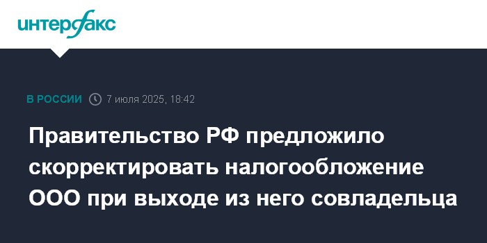 Правительство РФ предложило скорректировать налогообложение ООО при выходе из него совладельца