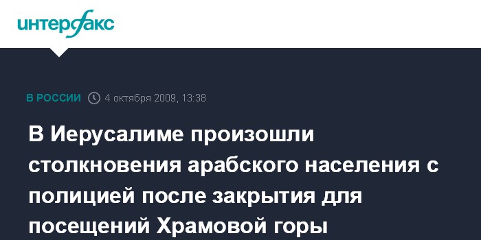 Москва. 4 октября. INTERFAX.RU - Около 150 арабов участвовали в столкновениях с сотрудниками израильских служб безопасности в Старом городе Иерусалима в воскресенье, сообщают израильские СМИ.