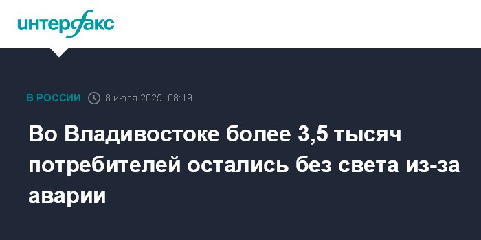 Во Владивостоке более 3,5 тысяч потребителей остались без света из-за аварии