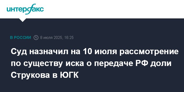 Суд назначил на 10 июля рассмотрение по существу иска о передаче РФ доли Струкова в ЮГК
