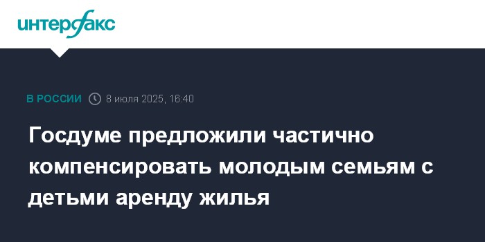 Москва. 8 июля. INTERFAX.RU - Депутаты Госдумы предложили предоставлять молодым семьям с детьми ежемесячную компенсацию на аренду жилья.