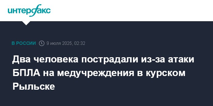 Москва. 9 июля. INTERFAX.RU - Два человека пострадали в результате атаки украинского беспилотника на больницу и здание станции скорой помощи в Рыльске Курской области, сообщил врио губернатора Александр Хинштейн в среду.
