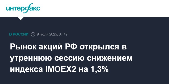 Рынок акций РФ открылся в утреннюю сессию снижением индекса IMOEX2 на 1,3%
