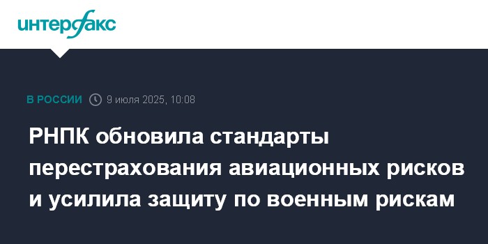 Москва. 9 июля. INTERFAX.RU - АО "Российская национальная перестраховочная компания" (РНПК) ввела в действие обновленное руководство по облигаторному перестрахованию авиационных рисков, где отражены изменения подходов и стандартов компании в этом сегменте, сообщает перестраховщик.