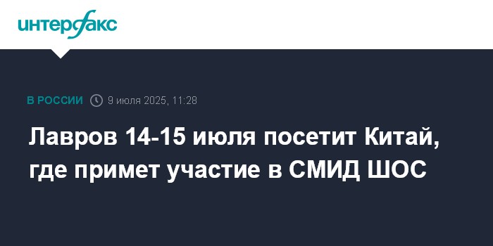 Лавров 14-15 июля посетит Китай, где примет участие в СМИД ШОС