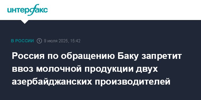Россия по обращению Баку запретит ввоз молочной продукции двух азербайджанских производителей