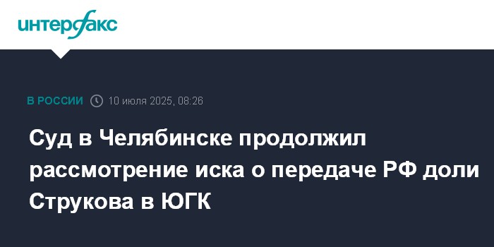 Суд в Челябинске продолжил рассмотрение иска о передаче РФ доли Струкова в ЮГК