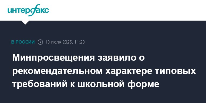 Москва. 10 июля. INTERFAX.RU - Для школьной формы с 3 сентября 2025 года вводится ГОСТ, однако российские школы вправе самостоятельно устанавливать требования к ее внешнему виду, цвету, фасону и знакам отличия, сообщили в четверг журналистам в министерстве просвещения РФ.