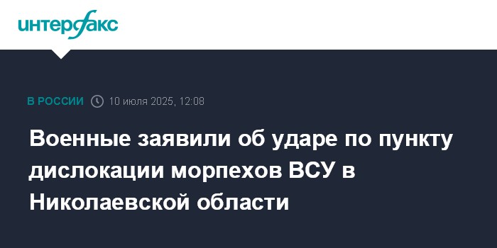 Военные заявили об ударе по пункту дислокации морпехов ВСУ в Николаевской области