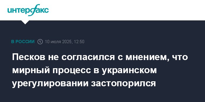 Москва. 10 июля. INTERFAX.RU - Мирный процесс в украинском урегулировании не застопорился, необходимо дождаться сигналов из Киева о желании или нежелании участвовать в третьем раунде переговоров с Россией, заявил пресс-секретарь президента РФ Дмитрий Песков.