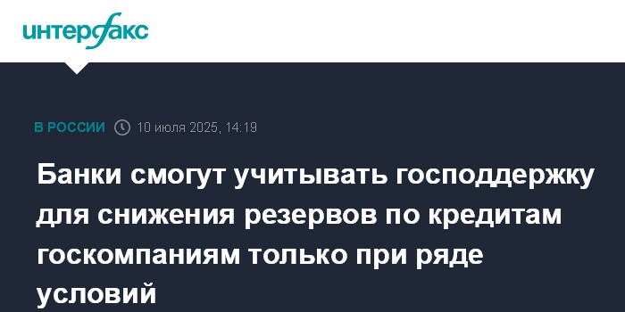 Банки смогут учитывать господдержку для снижения резервов по кредитам госкомпаниям только при ряде условий