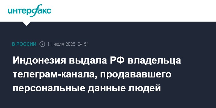 Индонезия выдала РФ владельца телеграм-канала, продававшего персональные данные людей