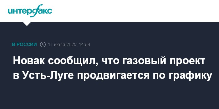Москва. 11 июля. INTERFAX.RU - Газовый проект в Усть-Луге реализуется по графику, сообщил журналистам вице-премьер Александр Новак в кулуарах Нефтяного саммита Республики Татарстан.