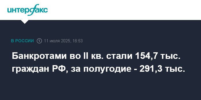 Банкротами во II кв. стали 154,7 тыс. граждан РФ, за полугодие - 291,3 тыс.