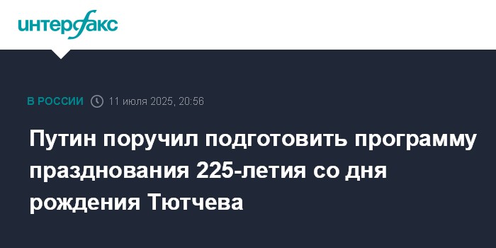"Администрации президента РФ подготовить совместно с правительством РФ и представить проект указа президента РФ о праздновании в 2028 году 225-летия со дня рождения Ф.И.Тютчева", - говорится в сообщении, размещенном на сайте.