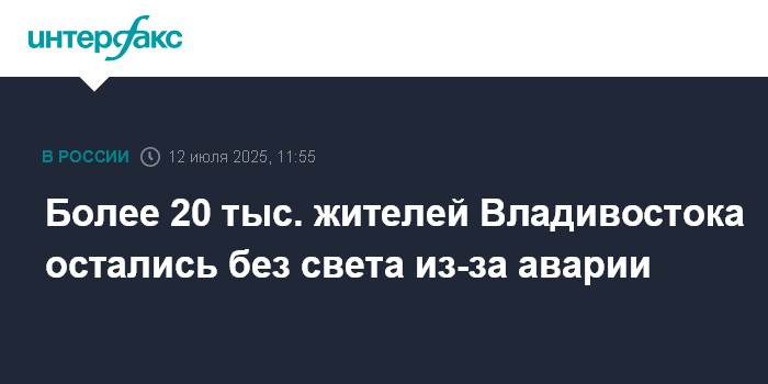 Более 20 тыс. жителей Владивостока остались без света из-за аварии