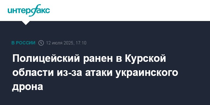 Москва. 12 июля. INTERFAX.RU - В Курской области из-за атаки беспилотника ВСУ пострадал полицейский, сообщил в субботу временно исполняющий обязанности губернатора Александр Хинштейн.