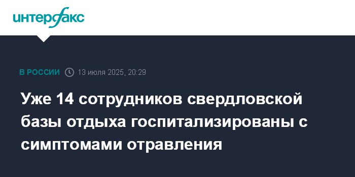 Уже 14 сотрудников свердловской базы отдыха госпитализированы с симптомами отравления