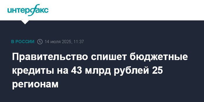 Правительство спишет бюджетные кредиты на 43 млрд рублей 25 регионам