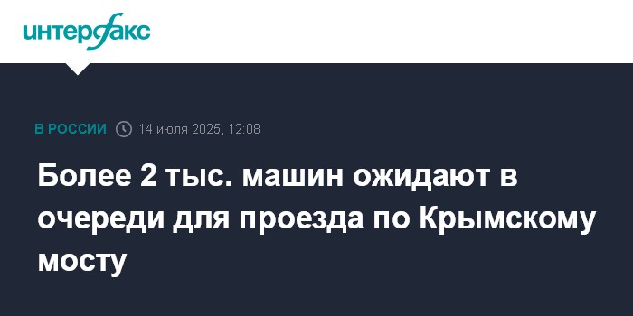 Москва. 14 июля. INTERFAX.RU - Проезда через досмотровые пункты на Крымском мосту в понедельник днем ожидают 2045 автомобилей, сообщили в инфоцентре, освещающем ситуацию на автомобильных подходах к мосту.