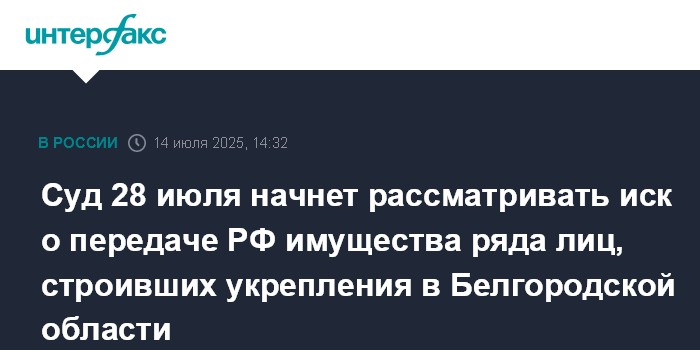 Суд 28 июля начнет рассматривать иск о передаче РФ имущества ряда лиц, строивших укрепления в Белгородской области