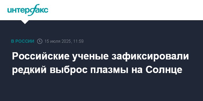 Москва. 15 июля. INTERFAX.RU - Крупный выброс плазмы с редкой траекторией зарегистрирован на Солнце в ночь на вторник, сообщили в лаборатории солнечной астрономии Института космических исследований (ИКИ) и Института солнечно-земной физики (ИСЗФ) РАН.