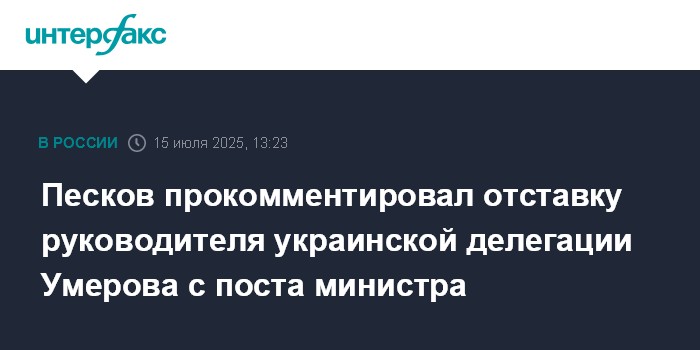 Песков прокомментировал отставку руководителя украинской делегации Умерова с поста министра