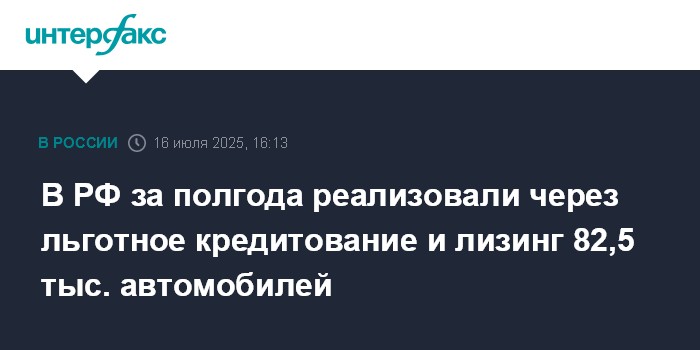 В РФ за полгода реализовали через льготное кредитование и лизинг 82,5 тыс. автомобилей