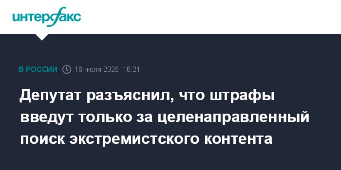 Депутат разъяснил, что штрафы введут только за целенаправленный поиск экстремистского контента