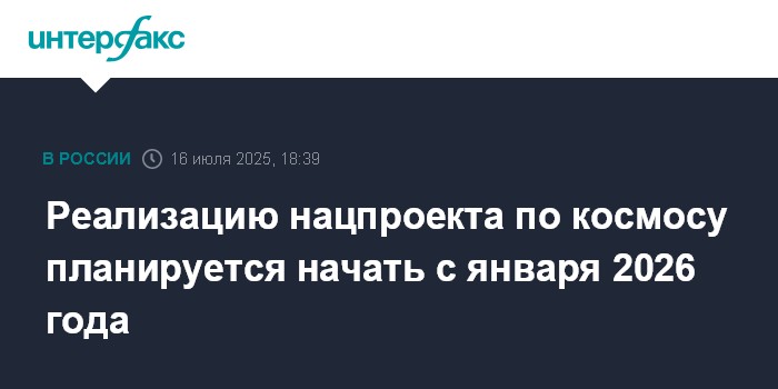 Москва. 16 июля. INTERFAX.RU - Национальный проект "Космос" запустят с 1 января 2026 года, сообщил гендиректор "Роскосмоса" Дмитрий Баканов.