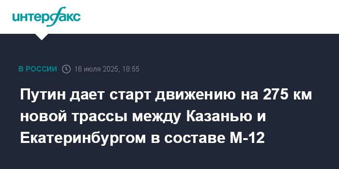 Путин дает старт движению на 275 км новой трассы между Казанью и Екатеринбургом в составе М-12