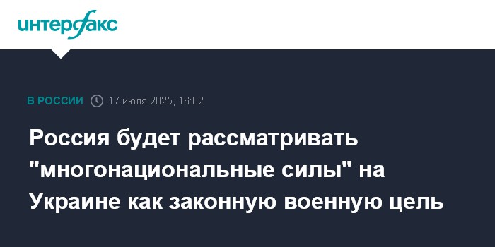 Россия будет рассматривать "многонациональные силы" на Украине как законную военную цель