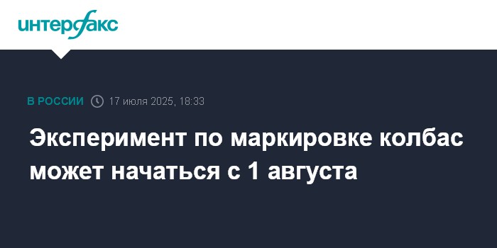 Москва. 17 июля. INTERFAX.RU - Эксперимент по маркировке мясных изделий и полуфабрикатов (включая колбасную и аналогичную пищевую продукцию из мяса, субпродуктов или крови животных) планируется провести с 1 августа 2025 года по 28 февраля 2026 года. Соответствующий проект постановления подготовил и опубликовал Минпромторг.