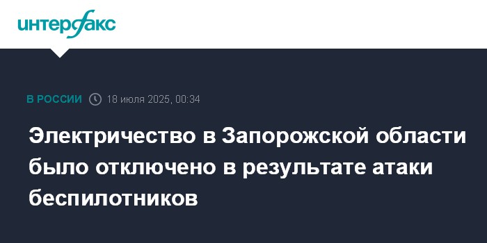 Электричество в Запорожской области было отключено в результате атаки беспилотников