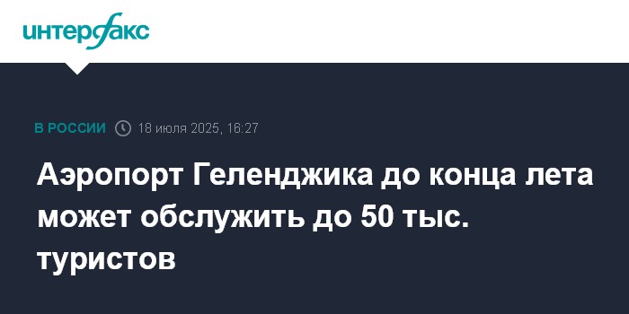 Москва. 18 июля. INTERFAX.RU - Аэропорт Геленджика до конца лета может обслужить до 50 тыс. туристов, если уже заявленная полетная программа не будет расширена, подсчитали в Ассоциации туроператоров России (АТОР).