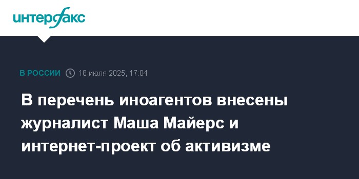 В перечень иноагентов внесены журналист Маша Майерс и интернет-проект об активизме