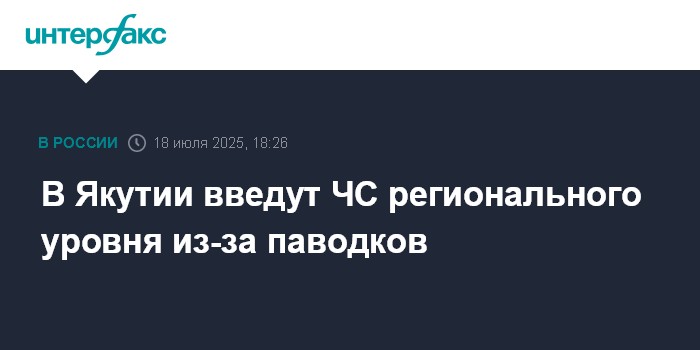 Москва. 18 июля. INTERFAX.RU - Глава Якутии Айсен Николаев поручил ввести в регионе режим ЧС в связи с подтопление трех районов из-за паводка. Он сообщил об этом в Telegram.