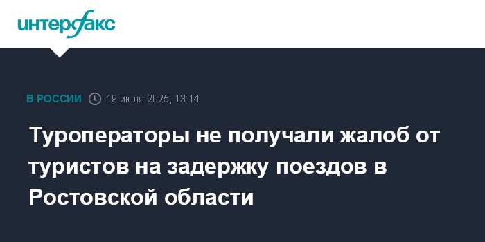 Москва. 19 июля. INTERFAX.RU - Российские туристы не обращались к туроператорам с жалобами, связанными с задержкой поездов дальнего следования по южным направлениям, сообщили "Интерфаксу" в Российском союзе туриндустрии (РСТ).