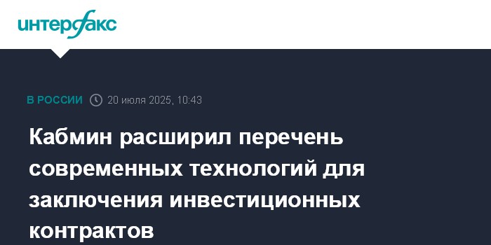 Кабмин расширил перечень современных технологий для заключения инвестиционных контрактов