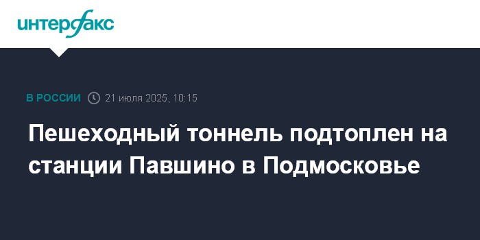 Москва. 21 июля. INTERFAX.RU - На станции Павшино Рижского направления и МЦД-2 подтоплен пешеходный тоннель, сообщает Московская железная дорога.