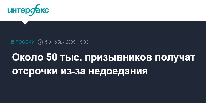 В прошлом году в ходе медицинского освидетельствования было выявлено 180 тыс. призывников с заболеваниями, связанными с так называемым расстройством питания, а проще говоря - из-за элементарного недоедания. Из этого числа более 45 тыс. были освобождены от военной службы из-за дефицита массы тела. Приблизительно такое же число призывников получит отсрочки от призыва и в текущем году.