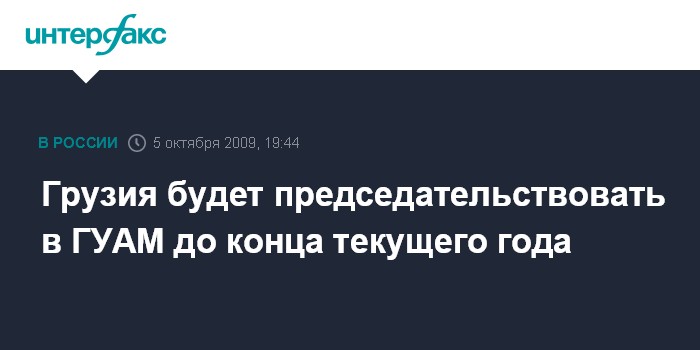 Киев. 5 октября. INTERFAX.RU - На заседании Совета министров иностранных дел ГУАМ, которое прошло в Нью-Йорке в сентябре, достигнута договоренность о продлении до конца 2009 года срока председательствования Грузии в ГУАМ. Также грузинская сторона заявила о готовности провести 4-й саммит ГУАМ в Тбилиси.