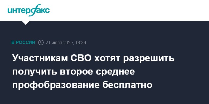 Москва. 21 июля. INTERFAX.RU - Законопроект, позволяющий участникам СВО получить второе среднее профессиональное образование на безвозмездной основе, внесён в Госдуму.